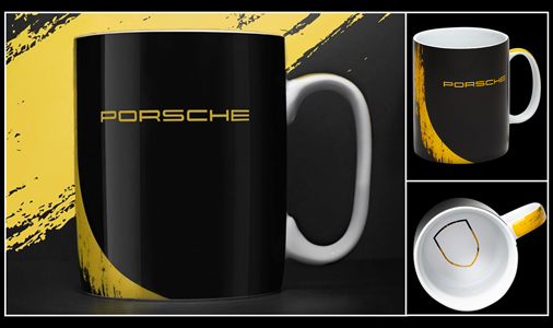 Tasse Porsche GT4 Clubsport 2019 Couleur noir / jaune - En porcelaine - Passe au lave-vaisselle Edition limitée - 10000 exemplaires numérotés Made in Germany - Porsche WAP0503400LCLS