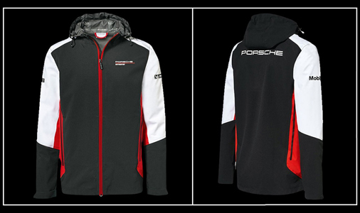 Veste homme - Porsche Motorsport Matière 100 % polyester Softshell - Couleur noir / rouge / blanc Intérieur microfibre doux au toucher - Bandes réfléchissantes Avec bouchons d'oreilles - Lanière et chiffon pour lunettes Support fil casque / écouteurs - Porsche WAP807J