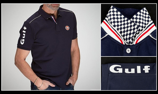 Polo homme Gulf Racing Couleur Bleu Marine - Matière 95 % coton 5% Elasthane Col relevable avec drapeau à damier 89,90 € TTC / Incl. Taxes