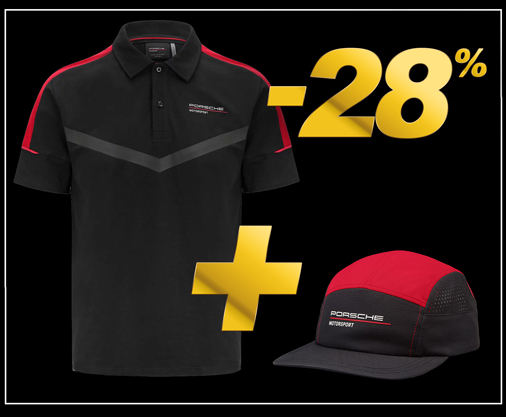 Duo Casquette + Polo homme Porsche Motorsport Matière Polo 95% Coton / 5% Elasthane - Couleur Noir / Rouge Matière Casquette 100% Polyester - Taille réglable - Couleur Noir / Rouge Porsche 701210882