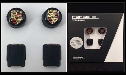 Set de 4 Bouchons de valve Porsche Pour les véhicules sans surveillance électronique de la pression des pneus Couleur noir / logo couleur - Matière Aluminium Porsche Original 99104460266 79,95 € TTC / Incl. Taxes