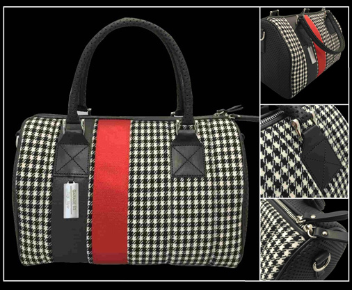 Sac à main Pepita Classic Style 3 poches intérieures - Compartiment intérieur doublé Matière Vinyl Basketweave / Tissu Pepita / Cuir Ceintures de Porsche 911 GT3 RS en décoration Dimensions 33 x 18 x 21 cm - 4 pieds métalliques 279,95 € TTC / Incl. Taxes