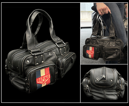 Sac à Main en Cuir Style Racing Matière 100% cuir - Doublure 100% coton - Couleur Noir 4 poches zippées à l'avant - 1 poche intérieure zippée Grand compartiment principal spacieux 149 € TTC / Incl. Taxes