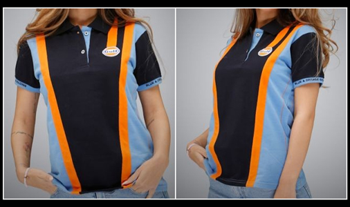 Polo femme Gulf Racing Matière 65% coton / 35% polyester - Couleur bleu marine / orange / bleu cobalt 79,90 € TTC / Incl. Taxes