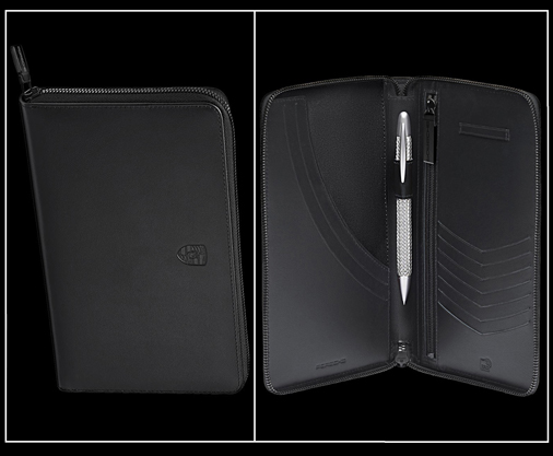 Grand Portefeuille en Cuir Porsche Matière cuir Nappa - Fermeture par zip - Couleur noir - Dimensions 23 cm x 14 cm x 2,5 cm 1 grande poche monnaie zippée - 3 poches documents - 1 support stylo 7 poches de cartes de crédit - 2 compartiments billets Porsche WAP0300350K 139,95 € TTC / Incl. Taxes