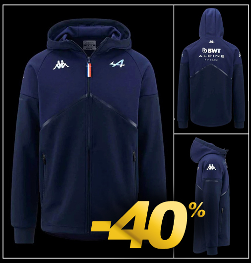 Hoodie homme Alpine F1 Matière 75% Polyester / 25% Coton - Fermeture zippée 2 poche latérales - 2 couleurs disponibles Kappa 381E7IW