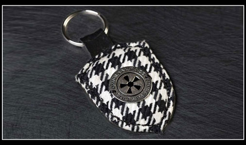 Porte-clés Ecusson 911 Classic Support cuir de qualité supérieure Pièce de tissu Pied de Poule 6,5 x 4,4 cm Médaillon métal 2,2 cm Anneau 2,5 cm 24,95 € TTC / Incl. Taxes