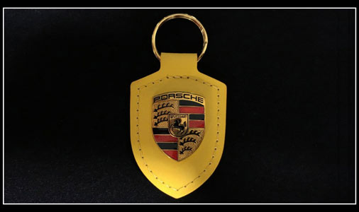 Porte-clés Porsche Ecusson Pièce de cuir de 7 cm avec contour piqué Ecusson céramique et métal de 3 cm Anneau doré - Couleur jaune Porsche Design WAP0500940E 17,95 € TTC / Incl. Taxes