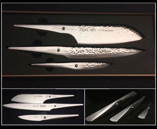 Coffret de 3 Couteaux Porsche Design Type 301 1 santoku (P02) - 1 couteau à découper (P05) - 1 couteau d'office (P09) Acier japonais 0.7% de carbone + molybdène vanadium Manche ergonomique en inox - Aiguisage ambidextre Design exclusif issu du Studio F. A. Porsche Chroma P529 - Garantie 5 ans 239,95 € TTC / Incl. Taxes