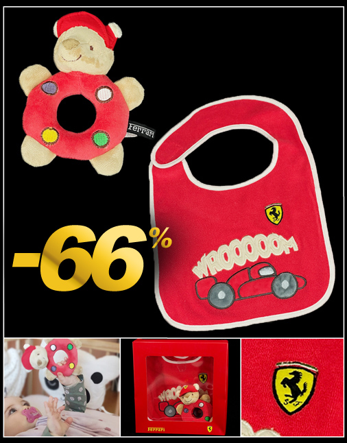 Set Ferrari pour bébé Hochet + Bavoir Matière 80% Coton / 20% Polyester - Couleur Rouge Fermeture du bavoir par scratch Ferrari 03683-09