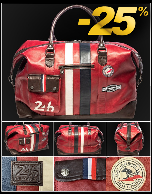 Très Grand Sac de Voyage en Cuir 24h Le Mans Grand compartiment interne - Fermeture principale zippée Couleur Rouge - 2 poche sur le devant - Deux anses non réglables Matière Cuir de mouton - Dimensions 47 x 54 x 24 cm Classic Legend Motors 26062