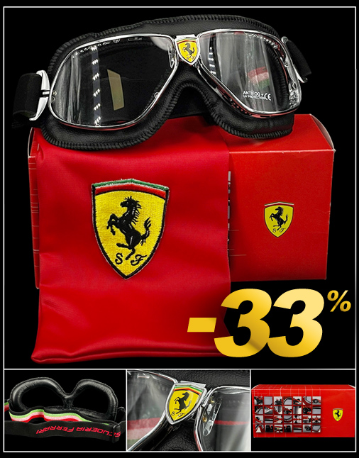 Lunettes de pilote vintage Ferrari Nannini Peut être porté ou apposé sur un casque - Tour de tête réglable - Bande élastiquée Protection de l'œil en synthétique transparent - conteur en cuir doux et naturel Système de changement de verre rapide et simple Made in Italy - Ferrari L0674
