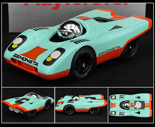 Miniature Vintage Inspiration Porsche 917 Dimensions 168 x 98 x 55 mm - Couleur Bleu / Orange Plastique ABS avec revêtement UV haute brillance Playforever PLZEM69 54,95 € TTC / Incl. Taxes