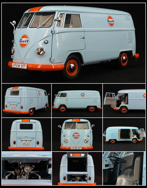 Volkswagen Combi T1b Gulf 1961 Bleu Gulf / Orange 1/18 - Schuco 450036800