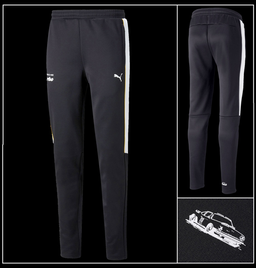 Pantalon homme Porsche Turbo by Puma Taille élastiquée avec cordon de serrage - 2 poches zippées Couleur Noir / Blanc / Jaune - Matière 66% Polyester / 34 % Coton Puma 533783-01 79,95 € TTC / Incl. Taxes