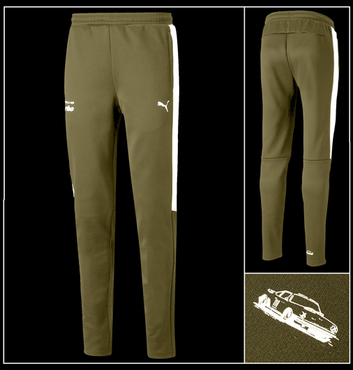 Pantalon homme Porsche Turbo by Puma Taille élastiquée avec cordon de serrage - 2 poches zippées Couleur Vert Olive / Blanc / Jaune - Matière 66% Polyester / 34 % Coton Puma 533783-03 79,95 € TTC / Incl. Taxes