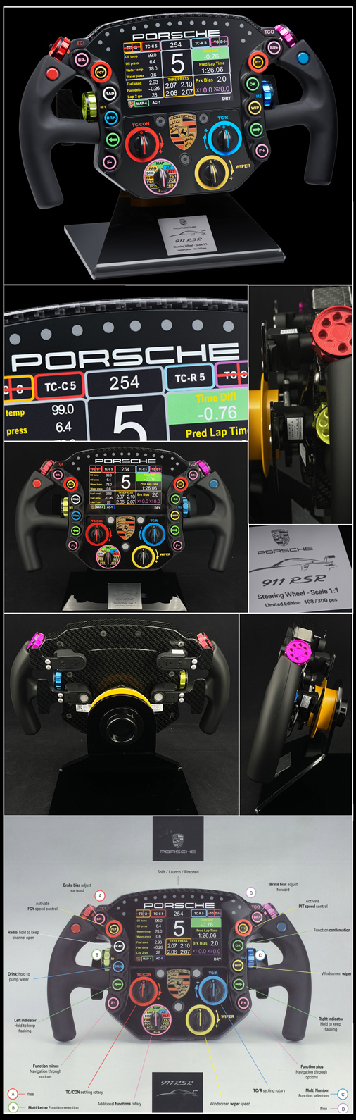 Steering Wheel Porsche 911 RSR 2019 - 1:1 Scale 16 x 32 x 28 cm - Decorative model, all elements are fixed