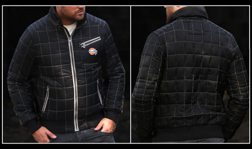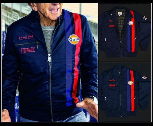 Veste homme Gulf - Derek Bell Veste en coton épais avec doublure matelassée Edition spéciale victoire Gulf aux 24h du Mans Couleur Bleu marine / Doublure Kaki Matière 100% coton / doublure nylon