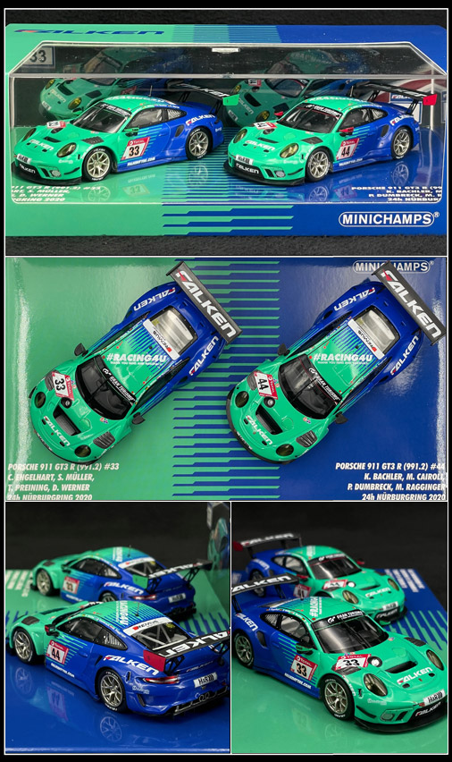 Set Porsche 911 GT3 R Falken n°33 & 44 24h Nürburgring 2020 - 1 : 43