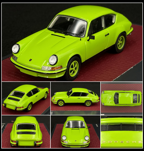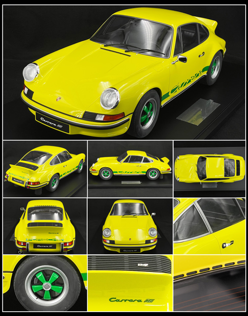 Porsche 911 Carrera RS 2.7 Lightweight 1972 Jaune Clair / Bandes Vertes 1/8 - Minichamps 800653009 Modèle en résine - Vitrine incluse - Plaque gravée sur socle Edition limitée - 99 exemplaires numérotés 1545,95 € TTC / Incl. Taxes