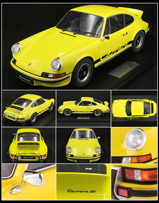 Porsche 911 Carrera RS 2.7 Lightweight 1972 Jaune Clair / Bandes Noires 1/8 - Minichamps 800653010 Modèle en résine - Vitrine incluse - Plaque gravée sur socle Edition limitée - 99 exemplaires numérotés 1545,95 € TTC / Incl. Taxes
