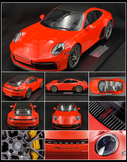 Porsche 911 Carrera 4S 2020 Orange Fusion 1/8 - Minichamps 800661000 Modèle en résine - Vitrine incluse - Plaque gravée sur socle Edition limitée - 99 exemplaires numérotés 1995,95 € TTC / Incl. Taxes