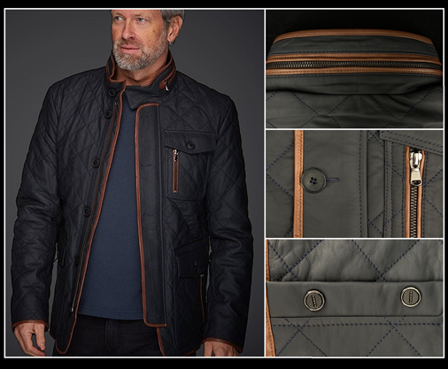 Veste en cuir homme Gentleman Driver Miles Matière 100% cuir d'agneau / doublure nylon - Couleur Gris-bleu ardoise 2 poche zippée poitrine - 4 poches extérieures - 2 poches intérieures Col doublé cuir avec patte boutonnée et zip décoratif