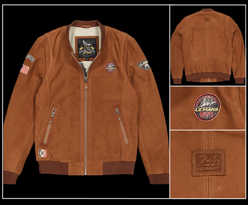 Veste en cuir homme Steve McQueen 24h Le Mans Matière : 100% cuir nubuck - Doublure : 100% coton Intérieur complet à l'effigie de Steve McQueen Nombreux détails surpiqués - Couleur : Havane