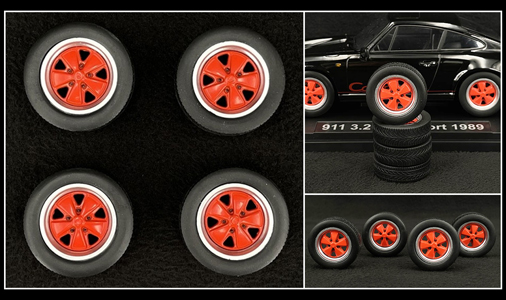 Set of 4 wheels with Fuchs Rims for Porsche 911 from 1968 to 1988 - 1 : 18