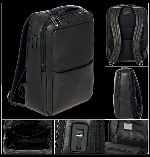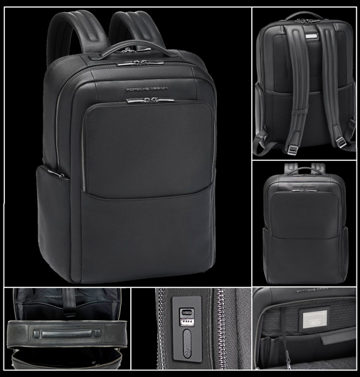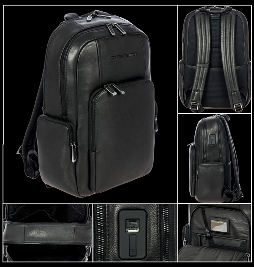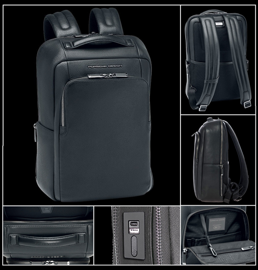 Sac à Dos S en Cuir Porsche Design Equipé d'un port USB externe pour une charge rapide de votre appareil - Cable USB intégré Porche zippée à l'avant - Bretelles réglables - Adapté pour ordinateur portable de 14" Grand compartiment principal zippé - Dimensions : 30 x 40 x 14 cm - Matière : Cuir Porsche Design OLE01614.001 499,95 € TTC / Incl. Taxes