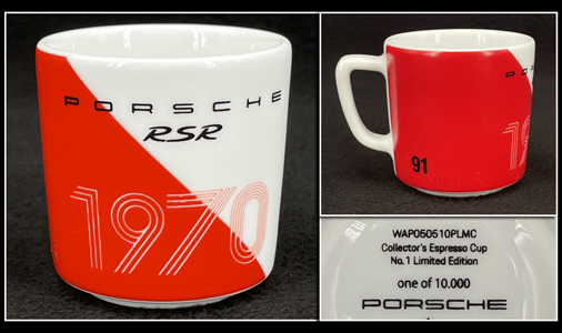 Tasse Expresso Porsche 911 RSR 1970 Porcelaine - Contenance 0,2 L - Fabriqué en Allemagne Porsche WAP050510PLMC Edition limitée - 10000 exemplaires numérotés 19,95 € TTC / Incl. Taxes