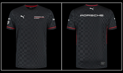 T-shirt homme Porsche Motorsport Matière 95% Coton, 5% Elasthanne - Coupe ajustée Couleur Noir / Rouge - Motif Damier ton sur ton Porsche WAP435SMSR 64,95 € TTC / Incl. Taxes
