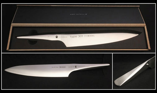 Couteau Chef Porsche Design Type 301 - Lame 24 cm Design exclusif issu du Studio F. A. Porsche Acier japonais 0.7% de carbone + molybdène vanadium Manche ergonomique en inox Aiguisage ambidextre Longueur 35,8 cm Poids 238 g Chroma P01 Garantie 5 ans 129,95 € TTC / Incl. Taxes
