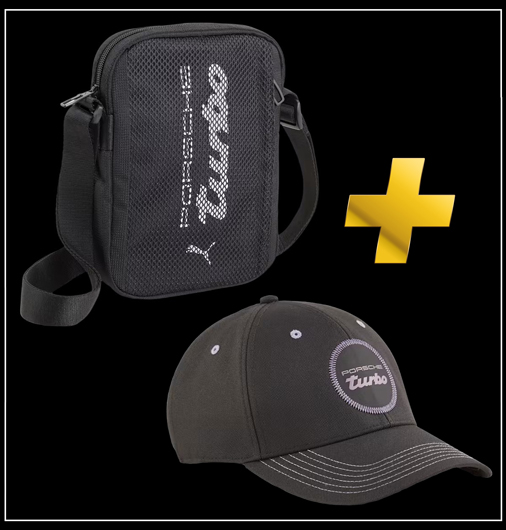 Duo Casquette + Sacoche Porsche Turbo Matière 100% polyester - Couleur Noir Puma 025629-01 + 090774-01