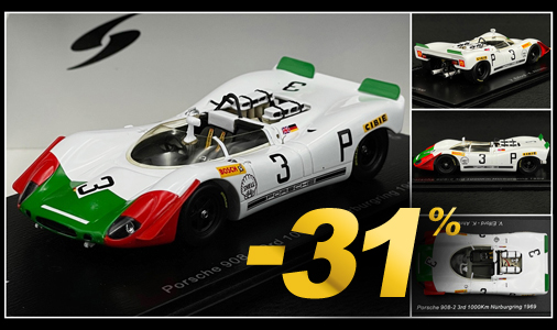 Porsche 908 / 02 n°3 - 3ème 1000km Nürburgring 1969 1/43 - Spark SG825 Edition Limitée - 300 exemplaires numérotés