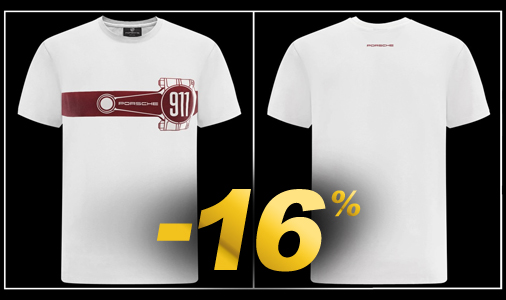 T-shirt homme Porsche 911 Bielle Couleur Blanc / Rouge Bordeaux - Matière 100% Coton Porsche WAP670PESS