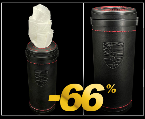 Boîte de Mouchoirs Porsche Extérieur 100% cuir de vachette - Intérieur résine - Surpiqûres rouges Couleur Noir - Hauteur 17,5 cm - Diamètre 6,5 cm Mouchoirs non inclus Porsche WAP0500080PTTB
