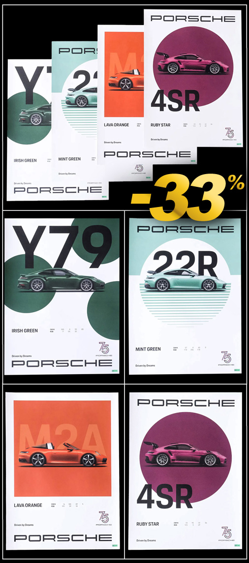 Set of 4 Porsche 911 Posters 75 Years Edition - 50 x 70 cm
