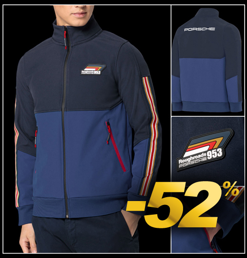 Veste homme Porsche 953 Roughroads Matière 95% Polyester / 5% Elasthanne - Couleur Bleu Marine - 2 poches latérales Fermeture principale zippée - Taille et manches côtelées Porsche WAP162PRRD