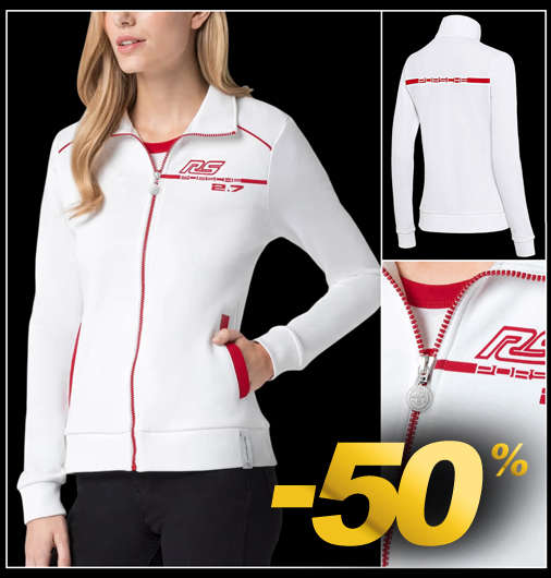 Veste femme Porsche RS 2.7 Veste softshell avec col droit - Fermeture zippée - Couleur Blanc / Rouge 2 poches latérales - Matière 100% Coton Porsche WAP954NRS2