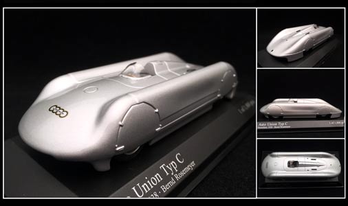 Auto-Union Typ C Stromlinie 1938 Gris argent 1/43 - Minichamps 410381900 Edition limitée - 1008 exemplaires 49,95 € TTC / Incl. Taxes
