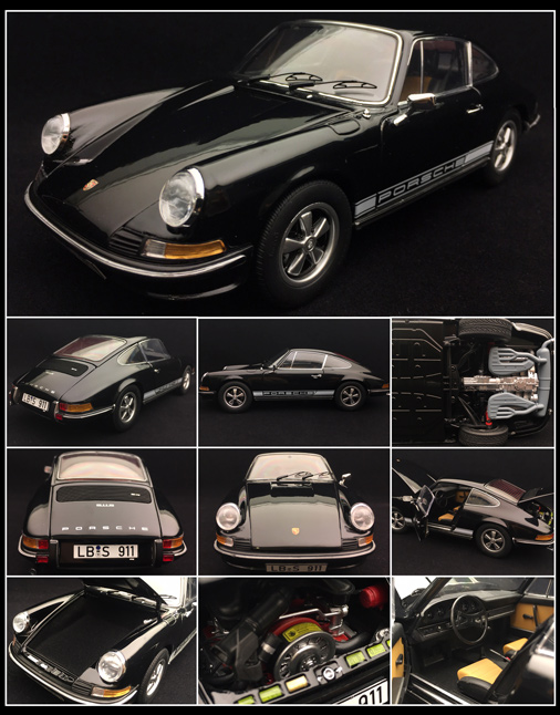 911 S 2.4 Coupé 1973 Noir 1/18 - Schuco 450036300 Intérieur fidèlement reproduit - Compartiment moteur détaillé Ouverture du capot, des portes et du coffre Edition limitée - 911 exemplaires 139,95 € TTC / Incl. Taxes