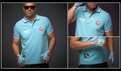 Polo Gulf victoire Le Mans Vintage Inscription Gulf en souvenir de la victoire de 1968 pour homme - Couleur: bleu ciel / filets blancs Matière: 65% coton / 35% polyester 79,90 € TTC / Incl. Taxes