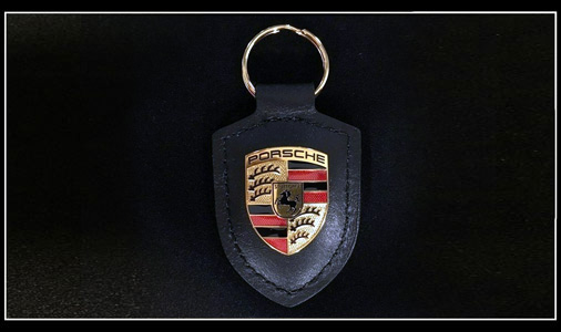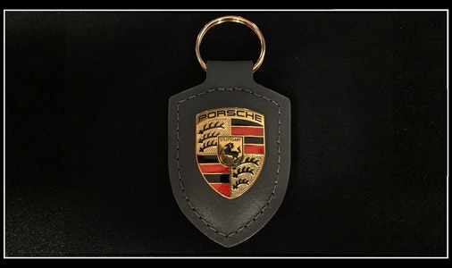 Porte-clés Porsche écusson Pièce de cuir de 7 cm avec contour piqué Ecusson céramique et métal de 3 cm Anneau doré - Couleur noir Porsche Design WAP0500900E 19,95 € TTC / Incl. Taxes