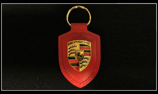 Porte-clés Porsche écusson Pièce de cuir de 7 cm avec contour piqué Ecusson céramique et métal de 3 cm Anneau doré - Couleur rouge Porsche Design WAP0500920E 19,95 € TTC / Incl. Taxes