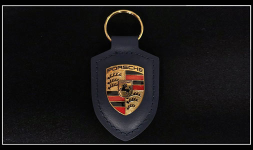 Porte-clés Porsche écusson Pièce de cuir de 7 cm avec contour piqué Ecusson céramique et métal de 3 cm Anneau doré - Couleur bleu Porsche Design WAP0500950E 19,95 € TTC / Incl. Taxes