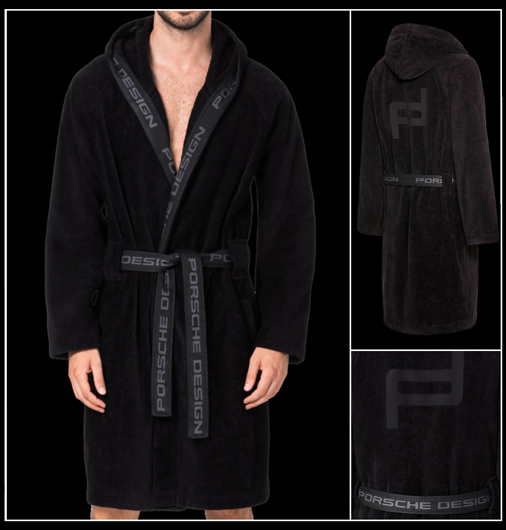 Peignoir homme Porsche Design Matière 100% coton - Couleur Noir - 2 poches latérales Avec capuche - Fermeture par ceinture à nouer Porsche Design 4056487026