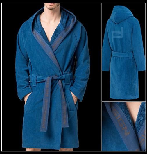 Peignoir homme Porsche Design Matière 100% coton - Couleur Bleu Lac - 2 poches latérales Avec capuche - Fermeture par ceinture à nouer Porsche Design 4056487030