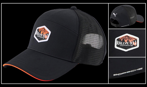 Casquette Porsche Rallye by Puma Taille unique ajustable par boucle - Couleur Noir / Orange Matière 98% Polyester / 2% Elasthan 34,95 € TTC / Incl. Taxes