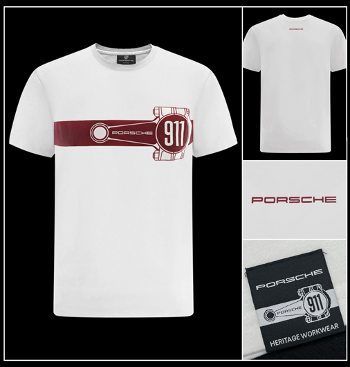 T-shirt homme Porsche 911 Bielle Couleur Blanc / Rouge Bordeaux - Matière 100% Coton Porsche WAP670PESS 54,95 € TTC / Incl. Taxes